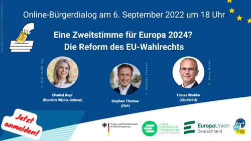 Online-Bürgerdialog „Eine Zweitstimme für Europa 2024? Die Reform des EU-Wahlrechts“ am 6. September 2022 um 18:00 Uhr