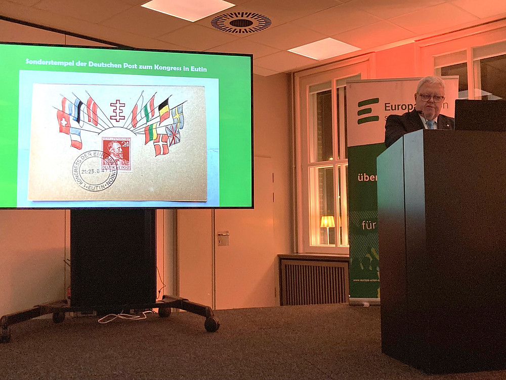 Begrüßt wurden die Gäste zunächst von dem Saxophon-Quartett der Musikschule Neumünster, das eine ganz besondere Version der Europa-Hymne, Oder an die Freude und weitere Stücke, zum Besten gab. Uwe Döring, seit mehr als 12 Jahren Landesvorsitzender der Europa-Union Schleswig-Holstein, eröffnete den Abend anschließend mit einer spannenden Reminiszenz der vergangenen Jahrzehnte. Dabei förderte er auch die ein oder andere Geschichte zu Tage, die selbst für langjährigen Verbandsmitglieder eine Neuigkeit war. So berichtete er unter anderem über Vorläufer-Organisationen, die sich im Schleswig-Holstein der ersten Nachkriegsjahre zusammentaten, um sich für ein vereintes und vor allem friedliches Europa einzusetzen. Erwähnung fand dabei auch eine Versammlung von Europa-Verbänden 1947 in Eutin, die möglicherweise die eigentliche Geburtsstunde der Europa-Union markiert.