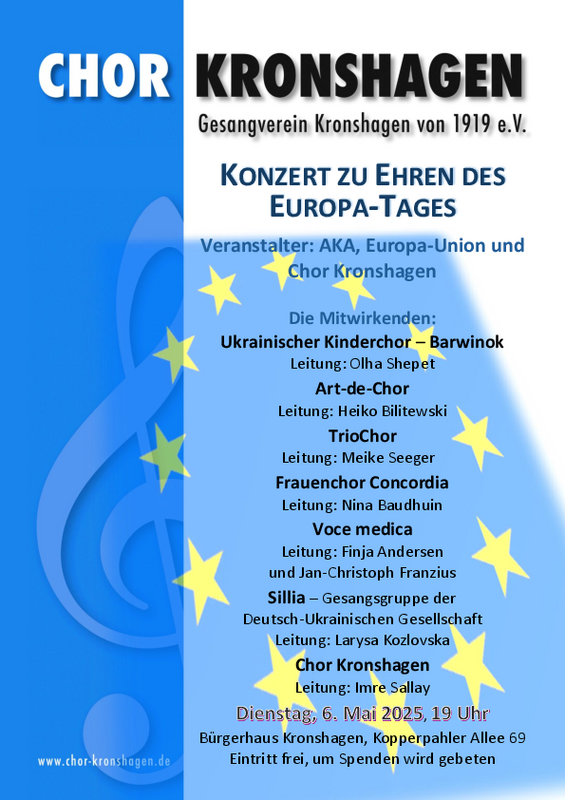 Genießen Sie mit uns am 06. Mai 2025 europäische Chormusik. Mit dabei sind unter anderem: