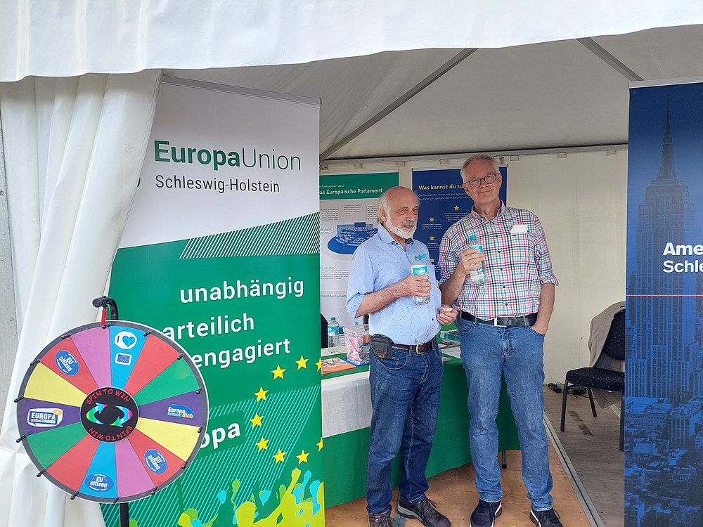 Traditionell präsentierten sich dort am 2. August einen ganzen Tag lang nicht nur die Kieler Auslandsvereine mit Musik und Essen aus aller Welt, sondern auch die Europa Union mit einem Info-Stand.
