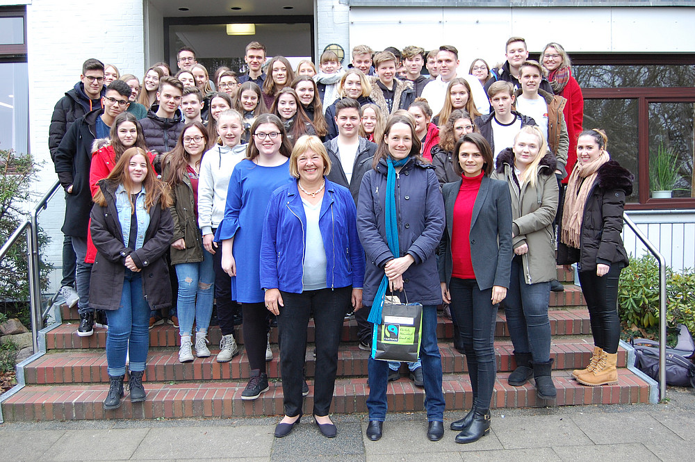 Nach zwei lernintensiven Tagen präsentierten die Schüler*innen der Sachsenwaldschule und der Hans-Brüggemann am Mittwoch ihre Ergebnisse aus den Gruppenarbeiten. Dabei bedienten sich die Jugendlichen interessanten Formaten wie etwa Talkshows und Rollenspielen. Nach den Präsentationen folgten lebhafte Diskussionen mit den Politikern Konstantin von Notz (Bündnis 90/die Grünen), Johann Wadephul (CDU) und Helmer Krane (FDP). Dabei unterhielten sich die Schüler*innen mit den Politikern im Talkshowformat über Themen wie die Verteilung von Flüchtlingen, eine Europa-Armee und den Ukraine Konflikt. Bevor die Jugendlichen dann ihre Rückreise antraten, rundete ein gemeinsames Mittagessen den letzten Tag ab.