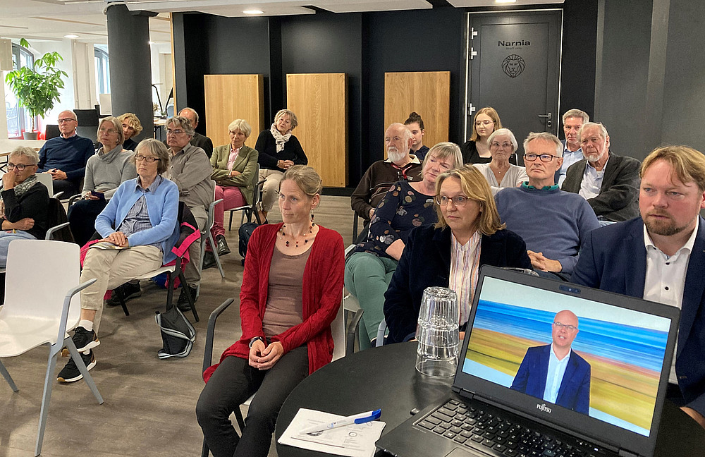 Nach einer Videobotschaft von Landes-Energiewendeminister Tobias Goldschmidt folgte ein Einstiegsvortrag von Frau Prof. Dr. Sonja Peterson vom Institut für Weltwirtschaft in Kiel Dabei ging es vor allem um die deutsche Energieversorgung im Spannungsfeld von Energiesicherheit und Klimaschutz. Es folgte die Diskussion mit den weiteren Podiumsgästen des Abends: Oliver Kumbartzky, energiepolitischer Sprecher der FDP-Fraktion im Schleswig-Holsteinischen Landtag, übernahm die politische Perspektive. Carina Vogel von der Verbraucherzentrale Schleswig Holstein watete vor allem mit praktischen Tipps für den Umgang mit den steigenden Energiepreisen auf und Jörg Rudat von der Hansewerk AG steuerte seine Perspektive als Insider der Energiedienstleister bei. Moderiert wurde die Runde von EUSH-Landesgeschäftsführer Ralf Rose. Rund anderthalb Stunden lang wurde lebhaft diskutiert, vor allem über die Abhängigkeit von russischem Gas sowie über die wachsende Unsicherheit der Verbraucherinnen und Verbraucher. Auch wenn die Zeit nicht ausreichte, um alle Fragen der Gäste zu klären, so gab es doch im Anschluss noch bei einem gemütlichen Get-Together und Imbiss Gelegenheit sich persönlich weiter Fragen zur Energiesicherheit auszutauschen.