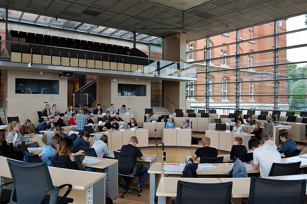 Am Montag, 25. Juni 2018, reisten 45 Schüler*innen aus ganz Schleswig-Holstein nach Kiel, um an einer ganz besonderen Veranstaltung teilzunehmen: Stilecht im Plenarsaal des Schleswig-Holsteinischen Landtags nahmen sie als EU-Abgeordnete am Planspiel zur Asyl- und Flüchtlingspolitik teil. Nach einem spielerischen Einstieg mithilfe eines Einführungsquiz zu den Grundlagen der EU-Politik startete eine spannende Debatte. Die Schüler*innen präsentierten die Positionierung der von ihnen repräsentierten Partei und tauschten sich im Anschluss innerhalb ihrer Fraktion aus, um eine gemeinsame Linie für die Verhandlungen in Ausschüssen zu finden.