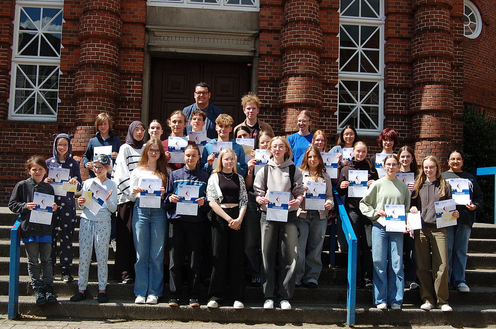 Die ausgezeichneten Schülerinnen und Schüler erhielten jeweils eine Urkunde, die von Bildungsministerin Karin Prien und der Präsidentin der Europäischen Bewegung Schleswig-Holstein, Martina Fey, unterzeichnet wurde. Zusätzlich gab es einen Sachgutschein für eine Buchhandlung.