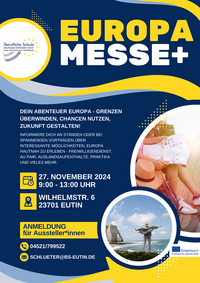 Dein Abenteuer Europa - Grenzen überwinden, Chancen nutzen, Zukunft gestalten! Am 27. Novermber 2024 lädt die Berufliche Schule des Kreises Ostholstein in Eutin zu einem besonderen Tag rund um Europa…