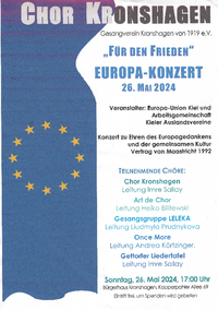 Im Rahmen der Europawocehn 2024 laden die Europa-Union Kiel und die Arbeitsgemeinschaft Kieler Auslandsvereine zu einem Europakonzert für die Ukraine ein. Mit dabei sind unter anderem die…