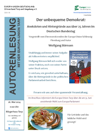 Anlässlich der Europawochen und der bevorstehenden Europawahl am 09. Juni 2024 veranstaltet der Ortsverband Tarp der Europa-Union Schleswig-Holstein eine Lesung. Wolfgang Börnsen liest im am 26. Mai…