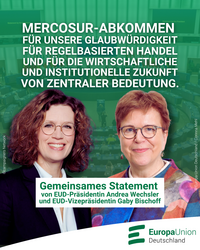 Das Europäische Parlament hat heute einen Aufschub der Ratifizierung des EU-Mercosur-Abkommens herbeigeführt. Die Präsidentin der überparteilichen Europa-Union Deutschland, Andrea Wechsler, und die…
