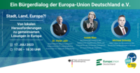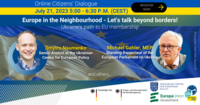 Diskutieren Sie gemeinsam bei unserem zweiten Online-Bürgerdialog unserer neuen Reihe "Europa in der Nachbarschaft - Wie müssen reden" am 21. Juli 2023 von 17:00 bis 18:30 Uhr zum Thema "Europe in…