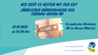 Die Europa-Union Mecklenburg-Vorpommern lädt in Kooperation mit der Europa-Union Deutschland zum jährlichen Bürgerdialog „Wie weiter mit der Europäischen Union“ am Sonnabend, den 24.09.2022, ab 15.30…