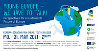 Seid am 31. Mai um 14 Uhr bei unserem Online-Jugenddialog „Young Europe – We have to talk! Perspectives for a sustainable Future of Europe” dabei und tauscht euch auf Englisch aus mit Delara…