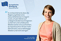 Europa-Union Generalsekretär Christian Moos, Mitglied des Vorstands der EBD, schließt sich den Worten von EBD-Präsidentin Linn Selle an: „Persönlich wie im Namen der überparteilichen Europa-Union…